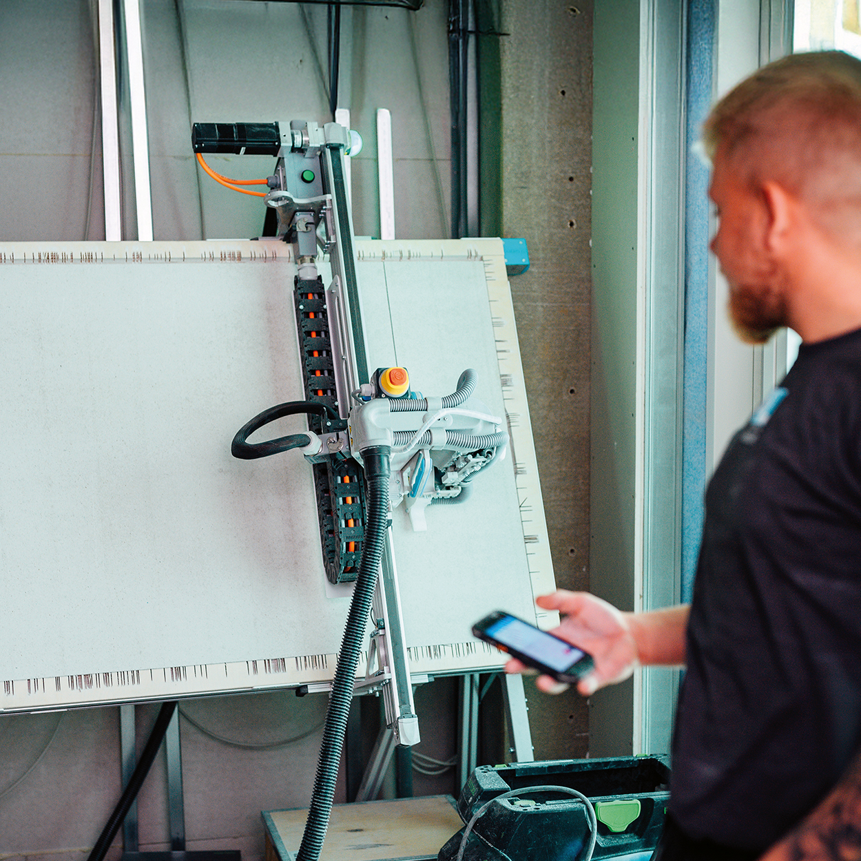 Skærerobotten registrerer pladen, beregner snittet og udfører arbejdet med millimeternøjagtighed. Det betyder, at du kan lægge målbåndet væk og undgå fejlskær, spild og unødige tilpasninger. Løsningen er særligt velegnet til store gipsprojekter, hotel- og boligbyggerier, skillevægsmontage, renoveringer og andre opgaver, hvor der skal skæres mange plader i samme tempo dag efter dag. Robottens konstruktion gør den nem at flytte, opstille og betjene – selv i trange midlertidige arbejdsområder.