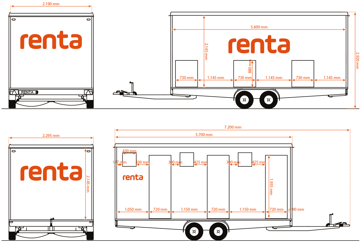 En badevogn fra Renta er designet til at give brugerne en behagelig oplevelse med bruser, håndvask og varmt vand. De er rummelige og giver mulighed for et godt skyl efter en lang arbejdsdag på byggepladsen eller en festivaldag i støvet terræn.