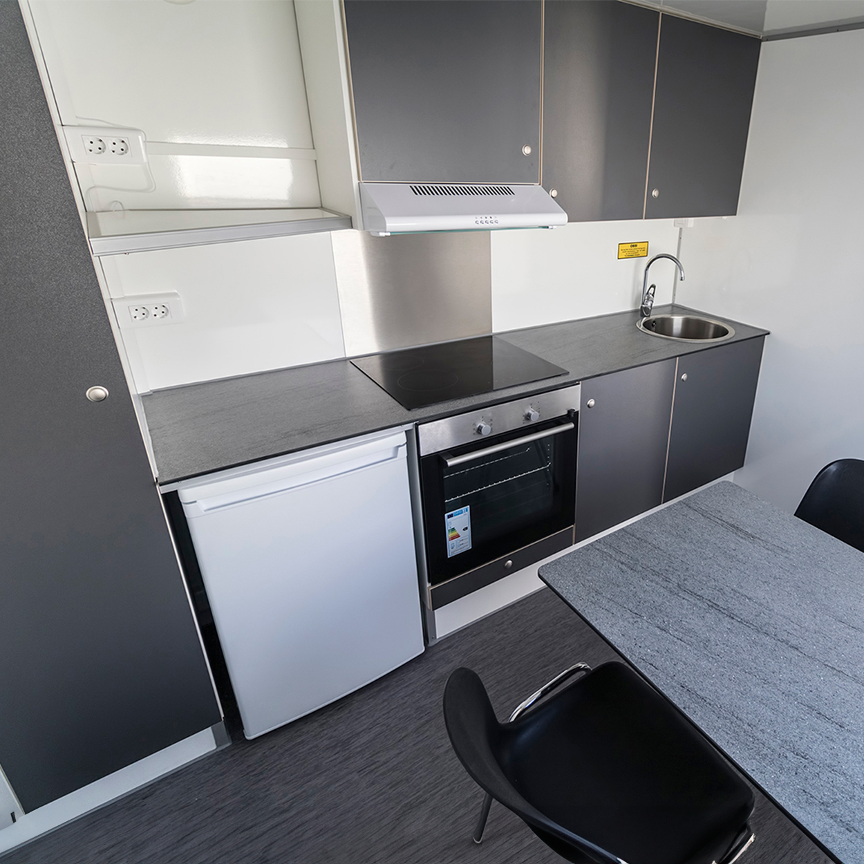 Vores beboelsesvogne er udstyret med alt det nødvendige for at sikre en god og behagelig hverdag – selv på en midlertidig arbejdsplads. De er indrettet med sovepladser, bord, stole, opbevaringsplads og ofte køkkenfaciliteter, så der er mulighed for både afslapning og madlavning.