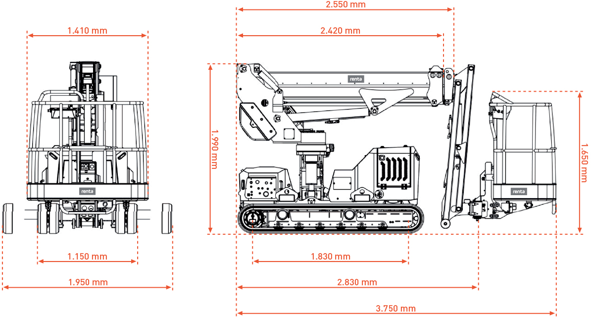 En bælte bomlift er et fremragende valg, når du skal arbejde i højden på underlag, hvor hjulmaskiner hurtigt må give op. Ved udlejning af bælte bomlift hos Renta får du en let, smal og enormt terrængående lift, der klarer mudder, grus, jord, skrånende terræn og andre udfordringer, uden at du går på kompromis med rækkevidde eller stabilitet.