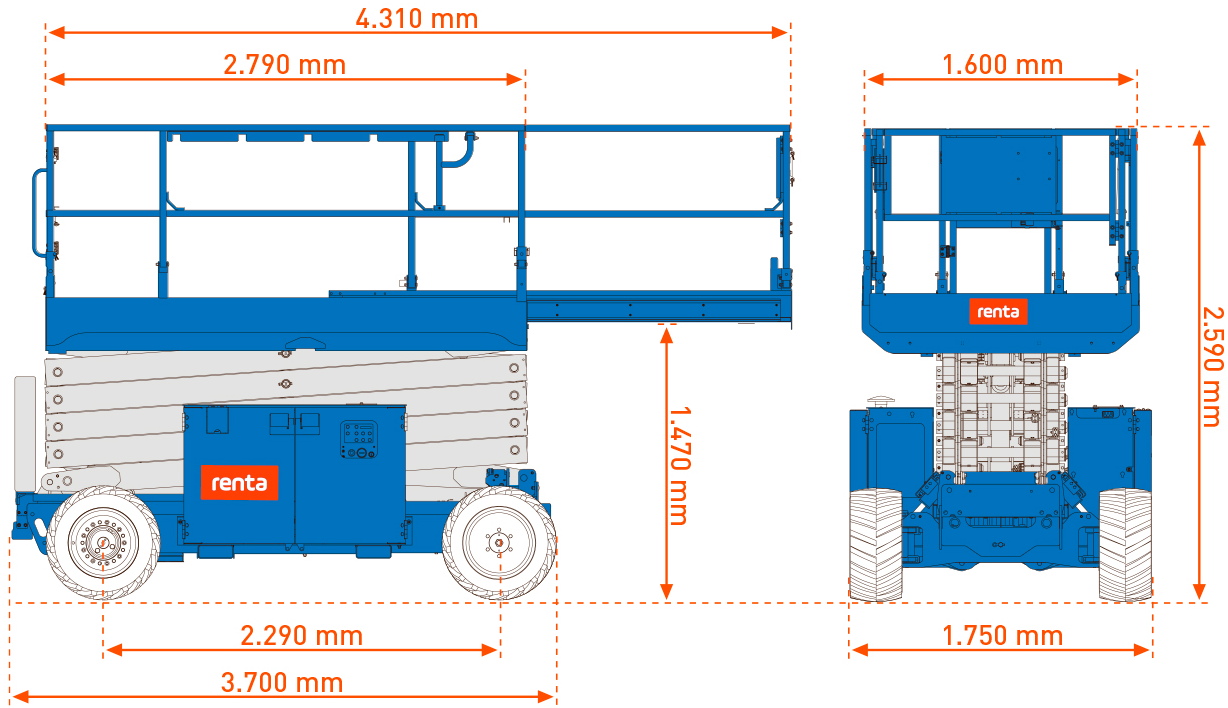 Saxlift 4WD med støtteben – 10 m – SWL 567 kg