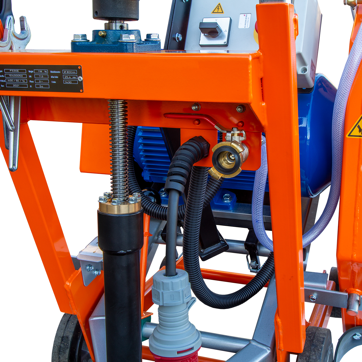 Der er udtag for vandtilslutning. Desuden er fugeskæreren er udstyret med løftekrog, for lettere transport.