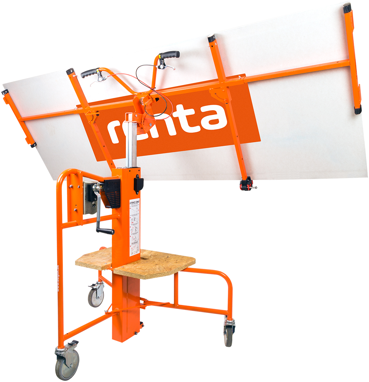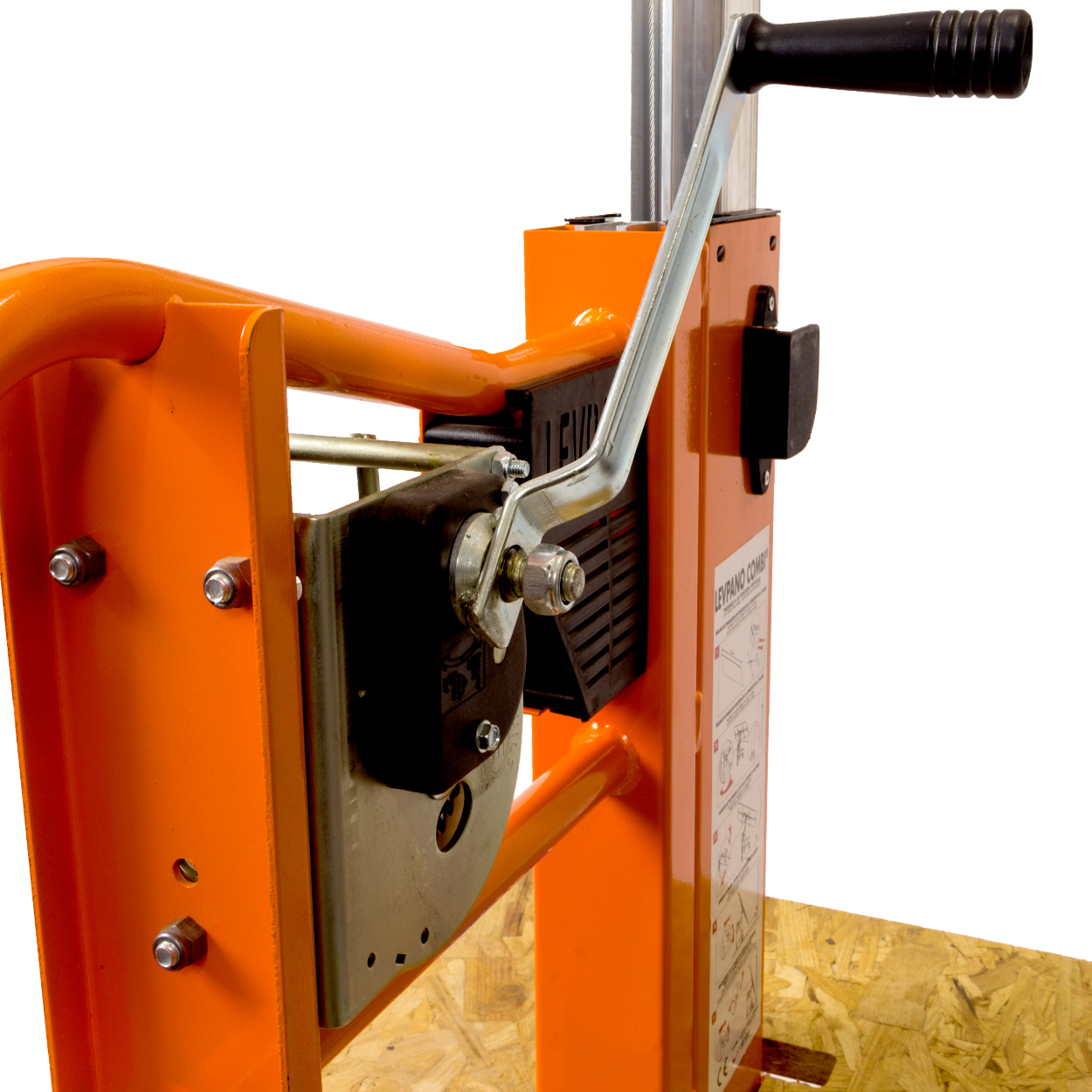 Den solide stålkonstruktion sikrer stabilitet, mens det manuelle hejsehjul giver kontrolleret og præcis styring under løftet. På trods af sin styrke og alsidighed vejer Levpano Combi kun 62 kg, så den er let at transportere, samle og betjene – selv for én mand.