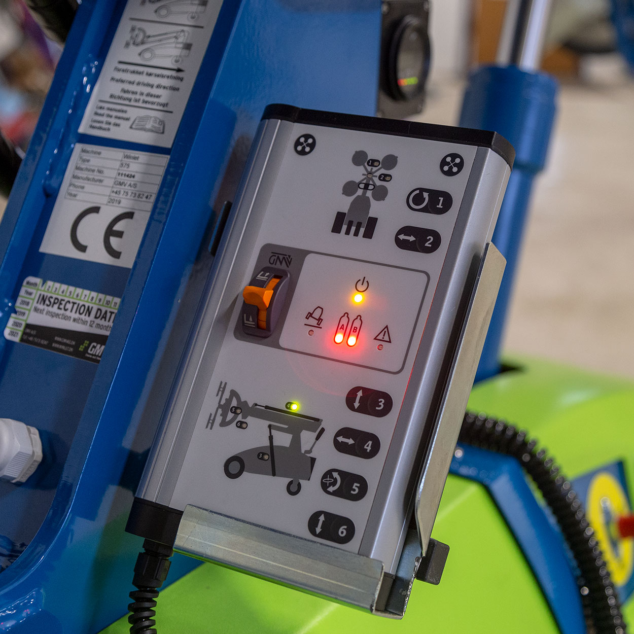 Den drives af to 150 Ah batterier, der giver rigeligt med strøm til en hel dags arbejde. Opladning sker via 230V, og med en egenvægt på 1.025 kg (1.300 kg med kontravægte) står maskinen urokkeligt fast – også under tunge løft.