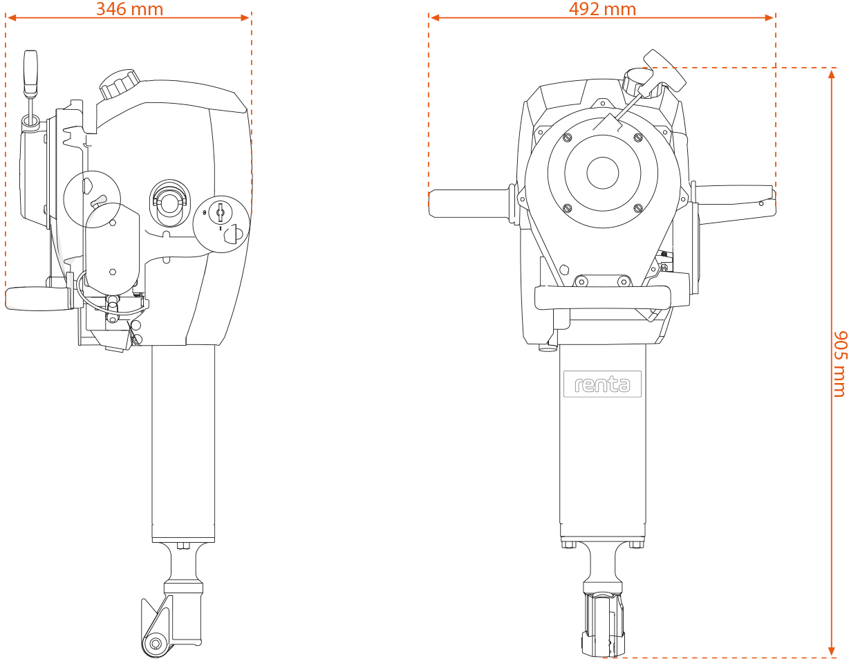 Med sin 2-takts benzinmotor på 1,7 kW (2,3 hk) leverer maskinen konstant høj ydelse og er altid klar til brug – uanset hvor du befinder dig. Den selvstændige drift betyder, at du slipper for kabler, generatorer og kompressorer.