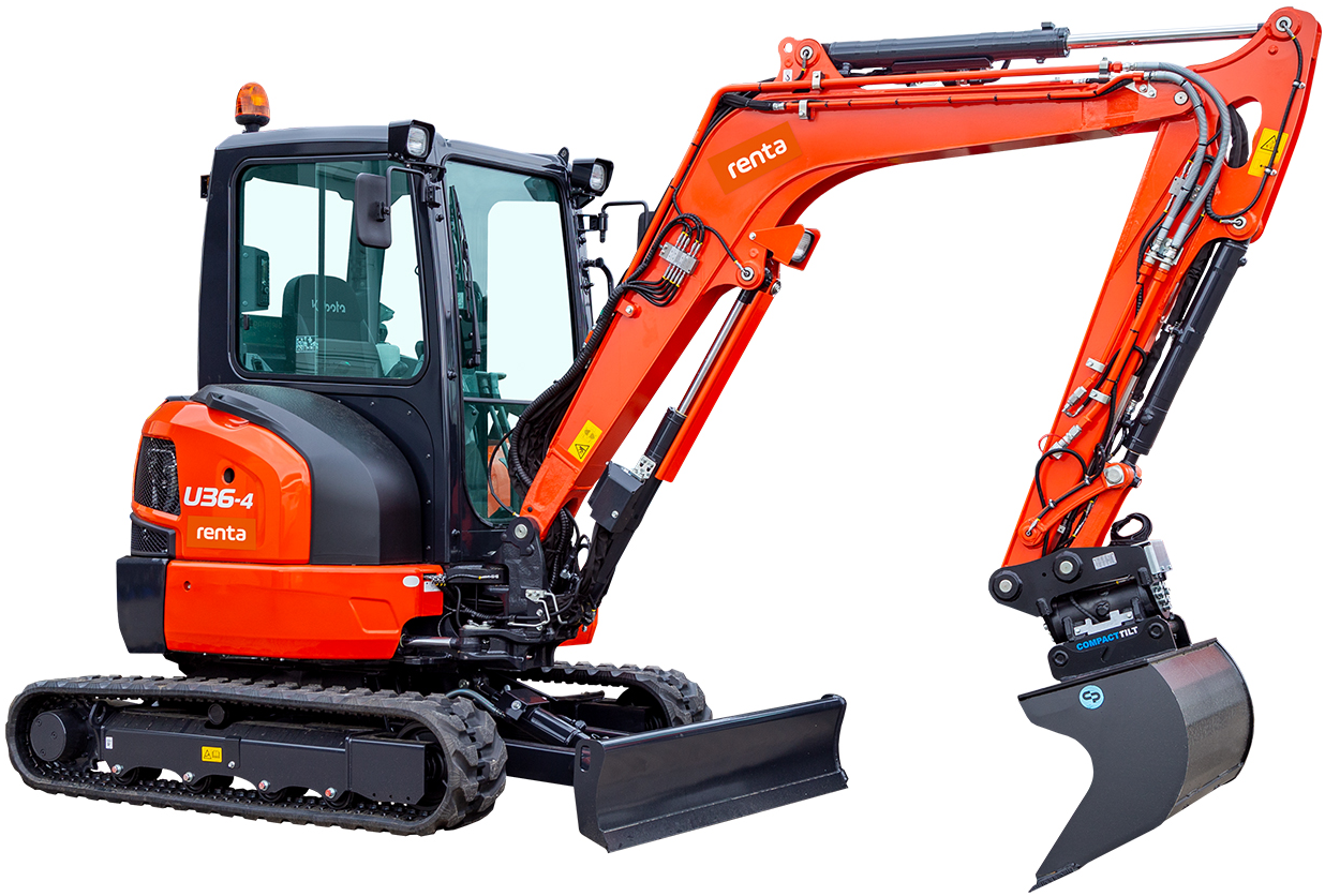 Lej Kubota U36-4 hos Renta, og få en fuldt serviceret minigraver leveret direkte til din byggeplads – klar til brug. Perfekt til midlertidige opgaver, hvor du har brug for høj ydeevne uden at investere i eget udstyr.