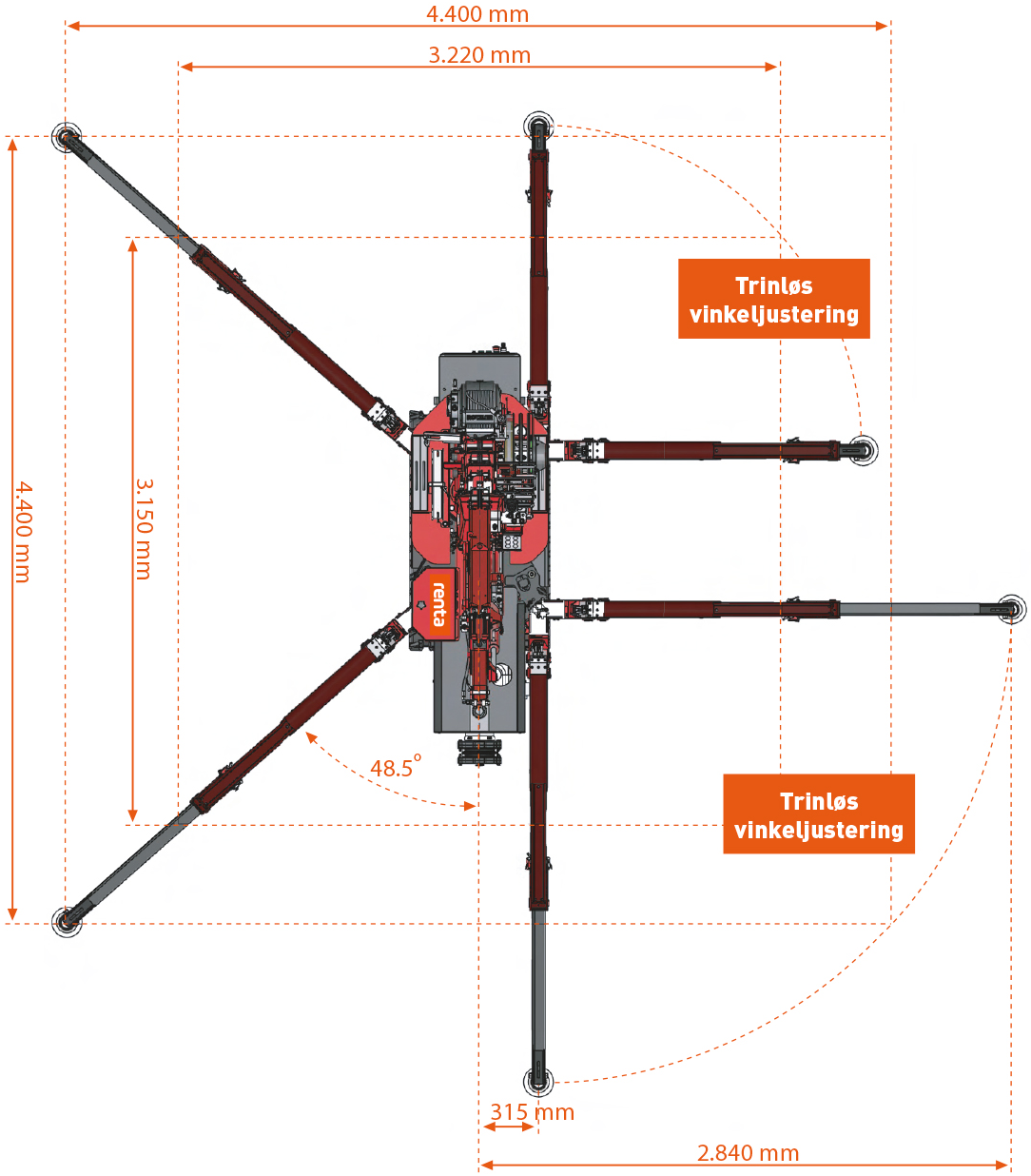 Minikranen måler kun 1.859 x 760 x 2.940 mm og vejer 2.800 kg, hvilket betyder, at den kan køres gennem almindelige døråbninger og nemt transporteres til forskellige arbejdsområder. Bælterne er afsmitningsfrie, så du kan arbejde på gulve, fliser og færdige overflader uden at efterlade mærker.
