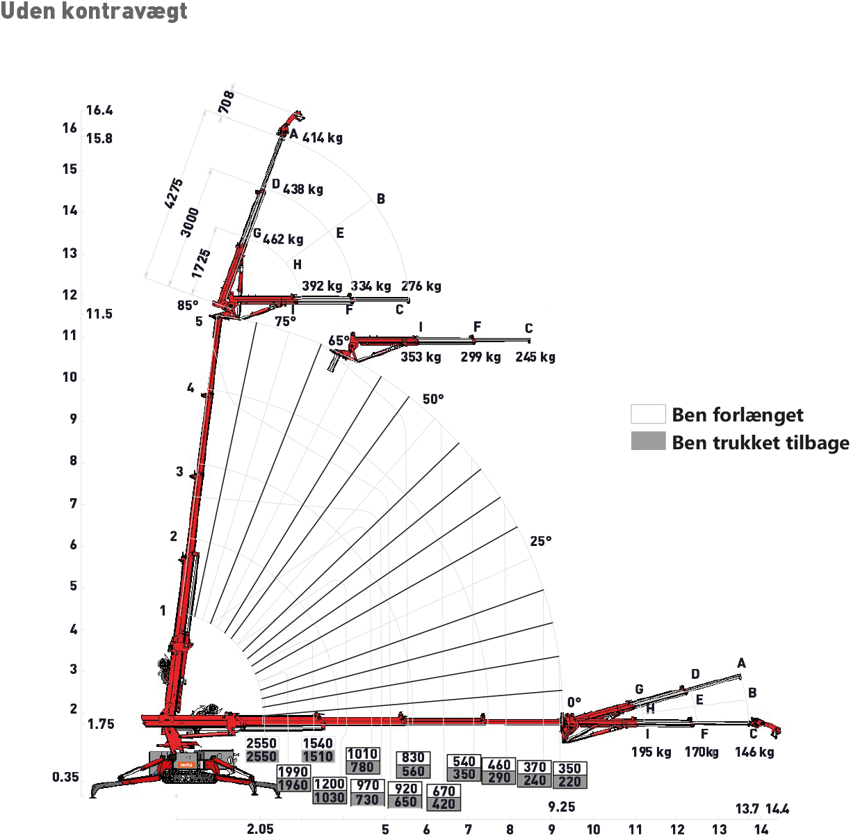 Med en kapacitet på 3.000 kg og et maksimalt udlæg på 13,7 meter klarer Hoeflon C6e både glasmontering, stålkonstruktioner og tunge montageopgaver med imponerende præcision. Den kan rotere ±360° og arbejde på hældninger op til 5°, hvilket giver stor fleksibilitet på trange byggepladser eller indendørs installationer.