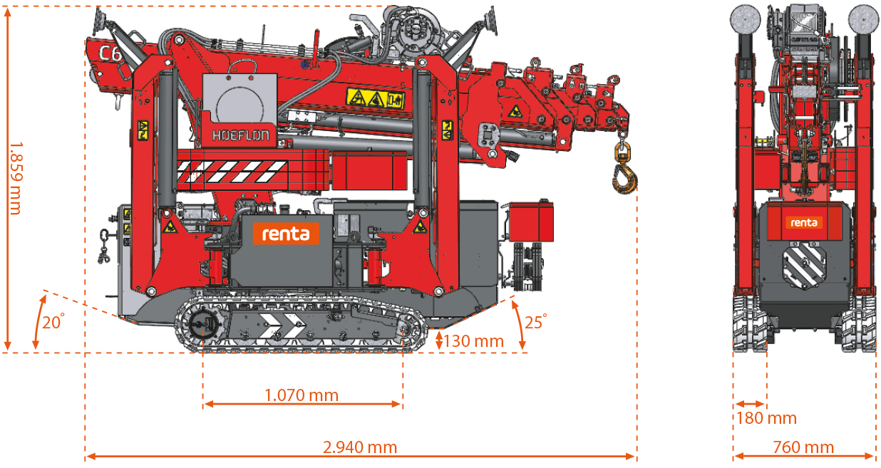 En ekstra fordel: Hoeflon C6e har en løftekapacitet på 6 t/m, så den kan betjenes uden krancertifikat – et stort plus for entreprenører og montører, der vil arbejde effektivt uden ekstra bureaukrati.