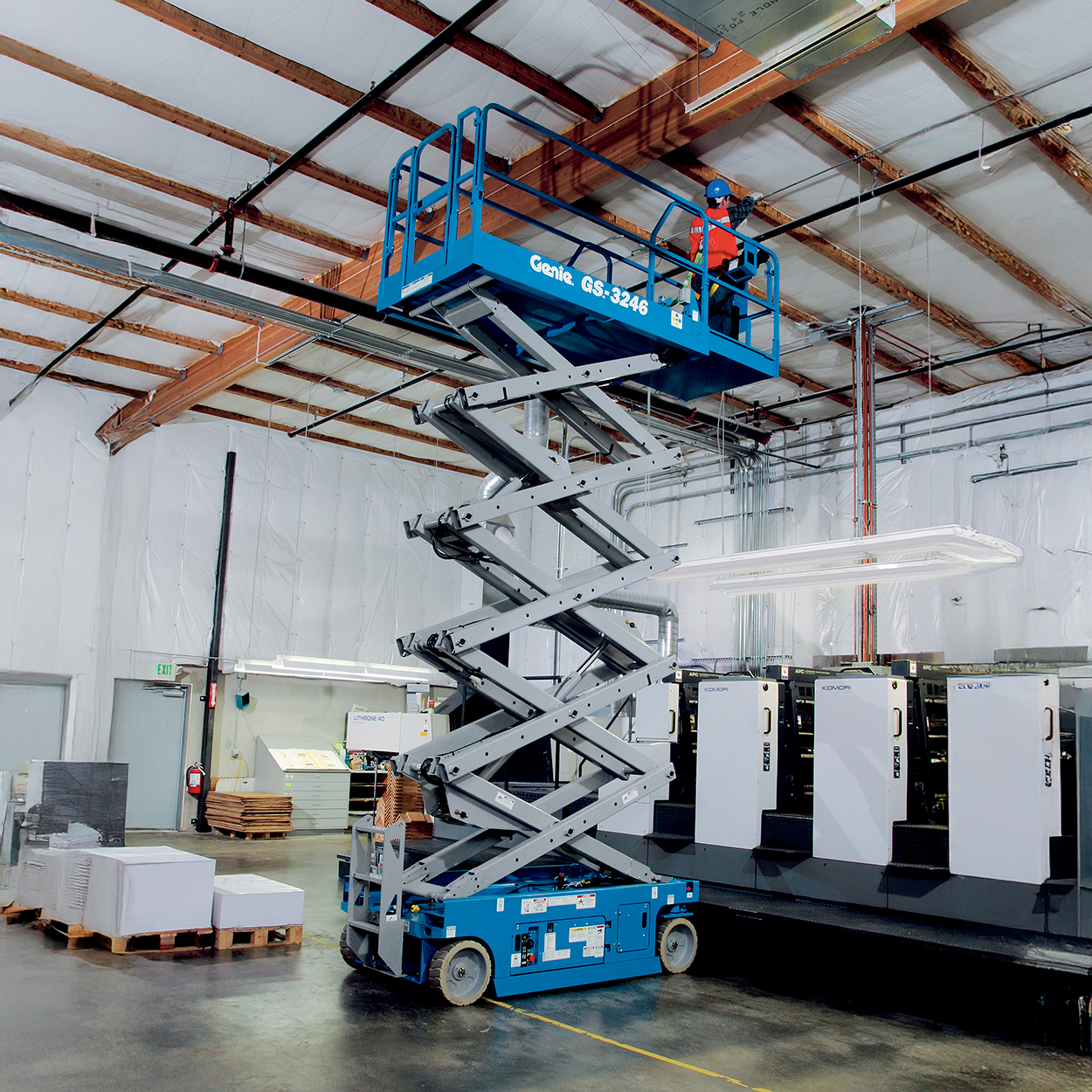 Genie GS-3246 er hurtigt klar til brug, nem at transportere og bygget til opgaver, hvor du skal bruge sikker adgang i højden med god kapacitet og fuld stabilitet.