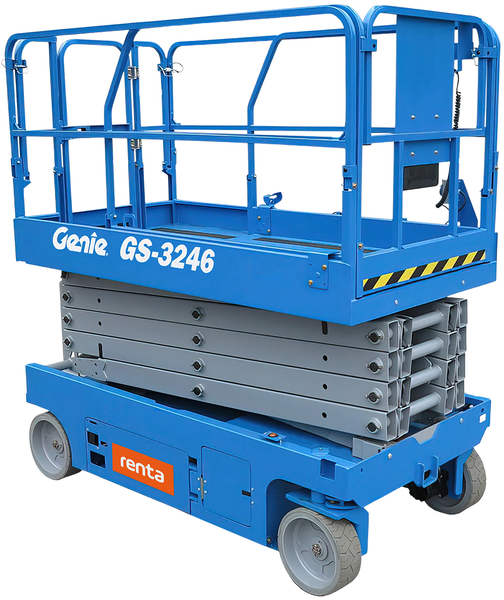 Lej Genie GS-3246 hos Renta og få en pålidelig og effektiv lift til indendørs højder. Find din nærmeste afdeling her.