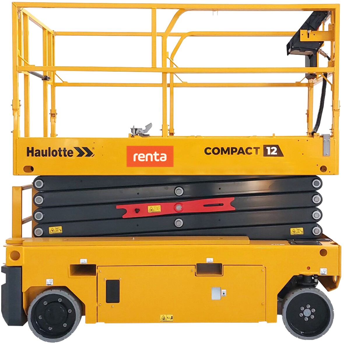 Lej Haulotte Compact 12 hos Renta og få en stærk, professionel saxlift til indendørs arbejde. Find din nærmeste afdeling her!