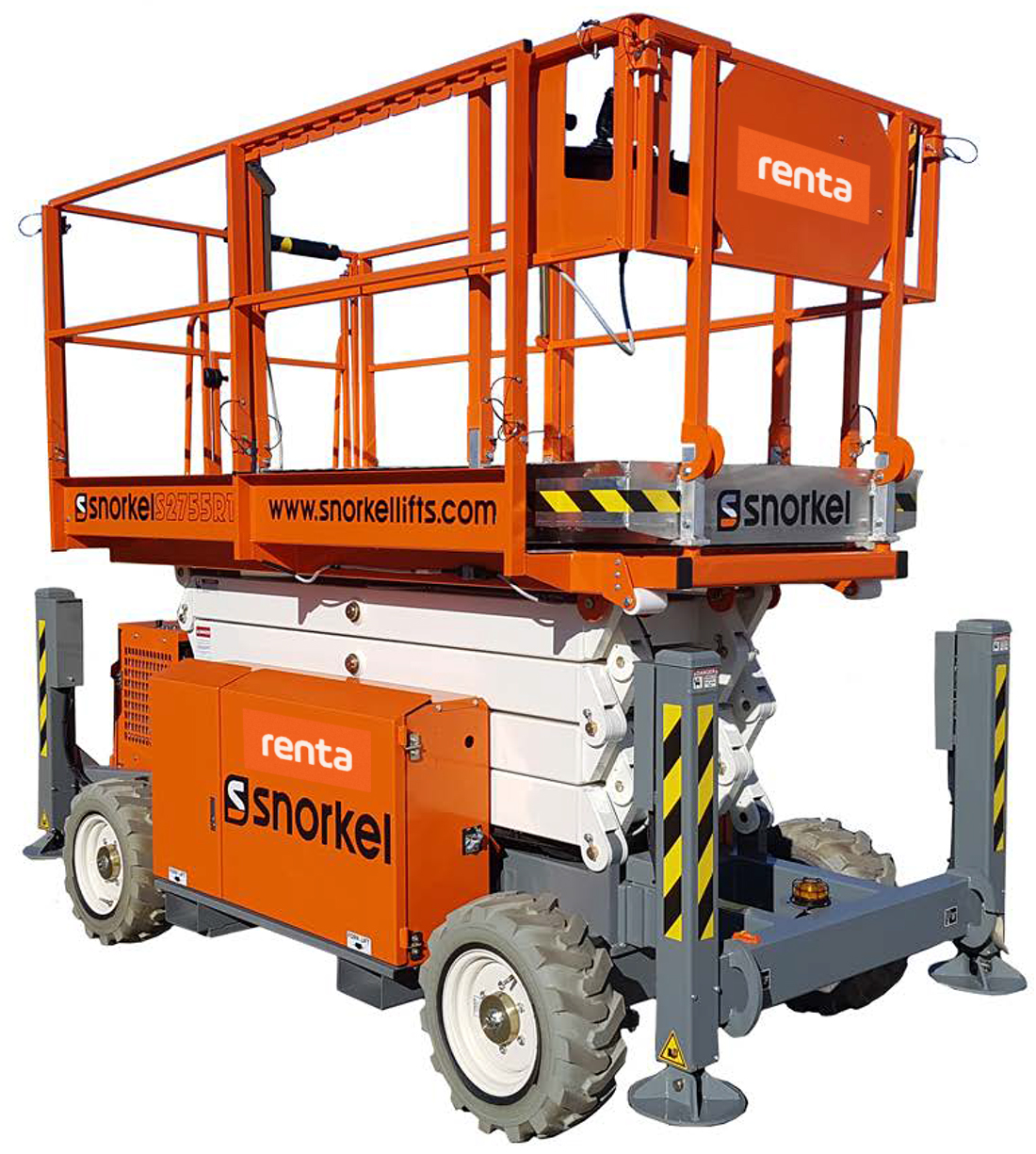 Snorkel S2755RTE er en oplagt løsning, når du har brug for en slank, stærk og stabil saxlift, der kan klare udfordrende terræn og samtidig arbejde lydløst.