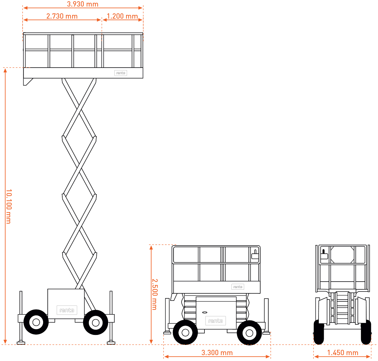 - Saxlift 2WD med støtteben – 12 m – SWL 450 kg