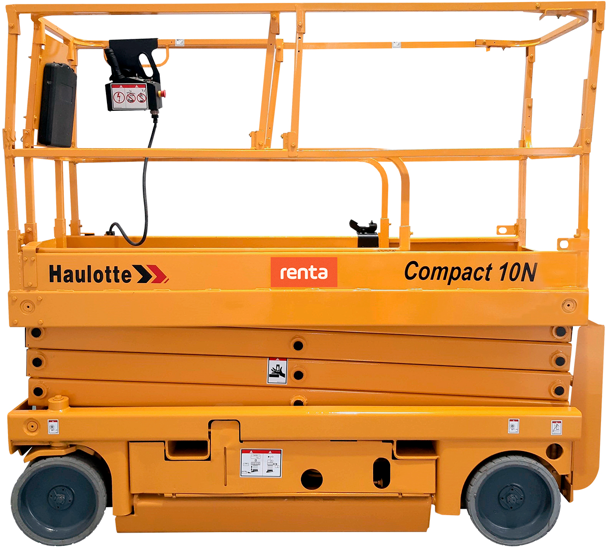 Lej Haulotte Compact 10N hos Renta og få en kompakt og effektiv saxlift til arbejde i højden, hvor pladsen er knap. Find din nærmeste afdeling her!