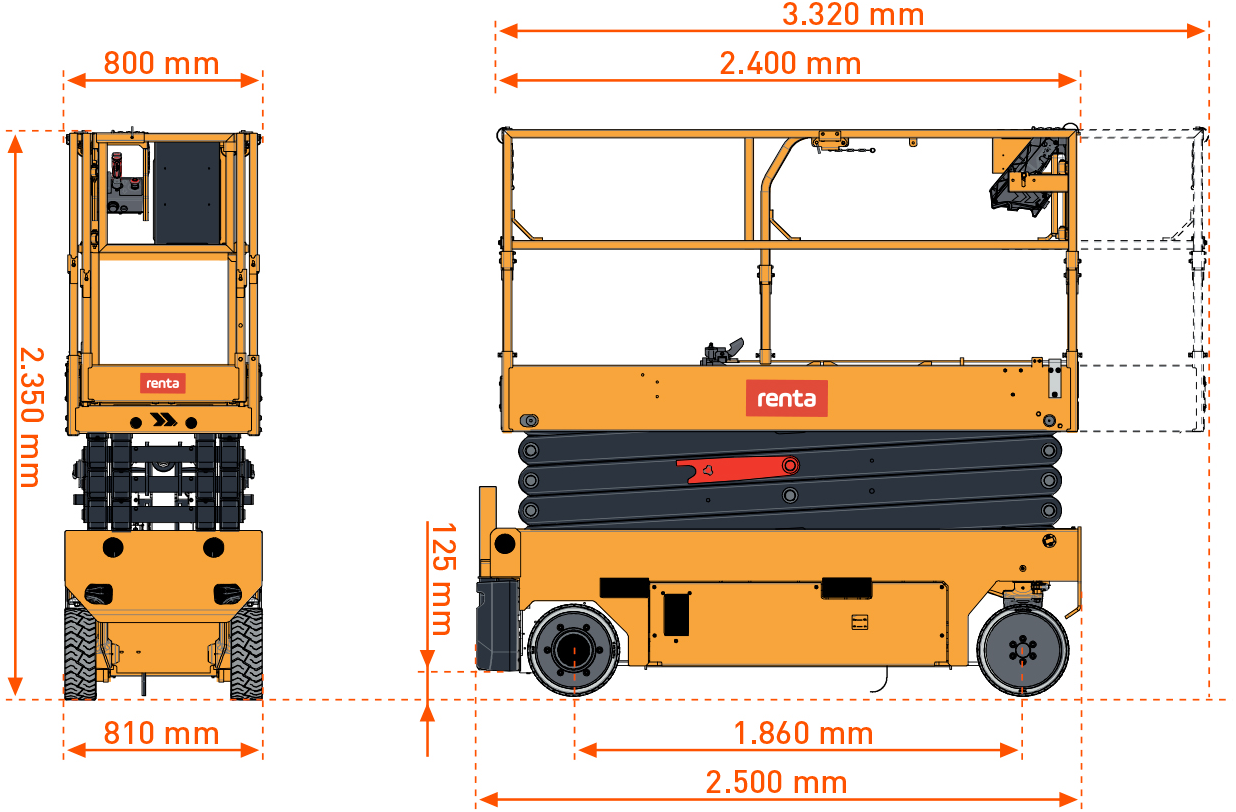 Lej JLG 2632ES hos Renta og få en alsidig og kompakt saxlift til krævende højder i snævre omgivelser. Find din nærmeste afdeling her!