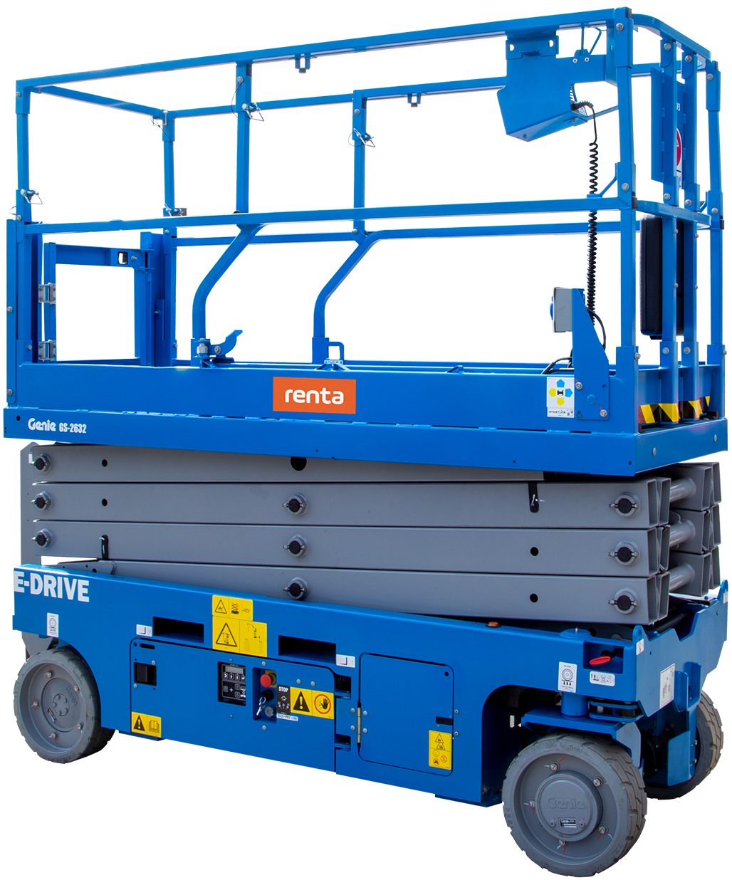 Lej Genie GS-2632 E-Drive hos Renta og få en driftssikker og smidig saxlift til professionelle indendørsopgaver. Find din nærmeste afdeling her!